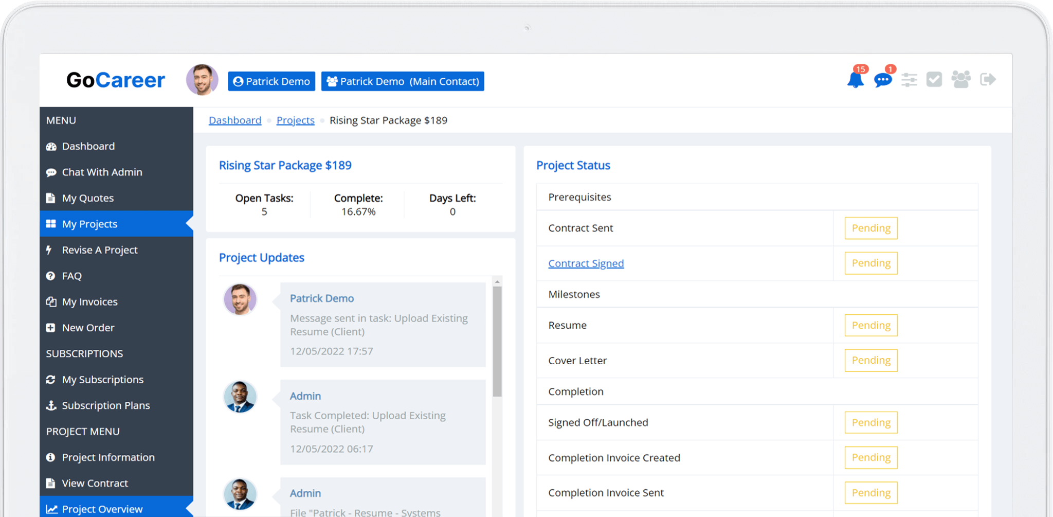 Imagine a client portal that’s your personal career HQ—keeping you in the loop and in charge at every turn. With its sleek design, tracking your progress and reaching milestones toward your goals feels like second nature. Forget endless email chains and step into a world of smooth, hassle-free collaboration.
