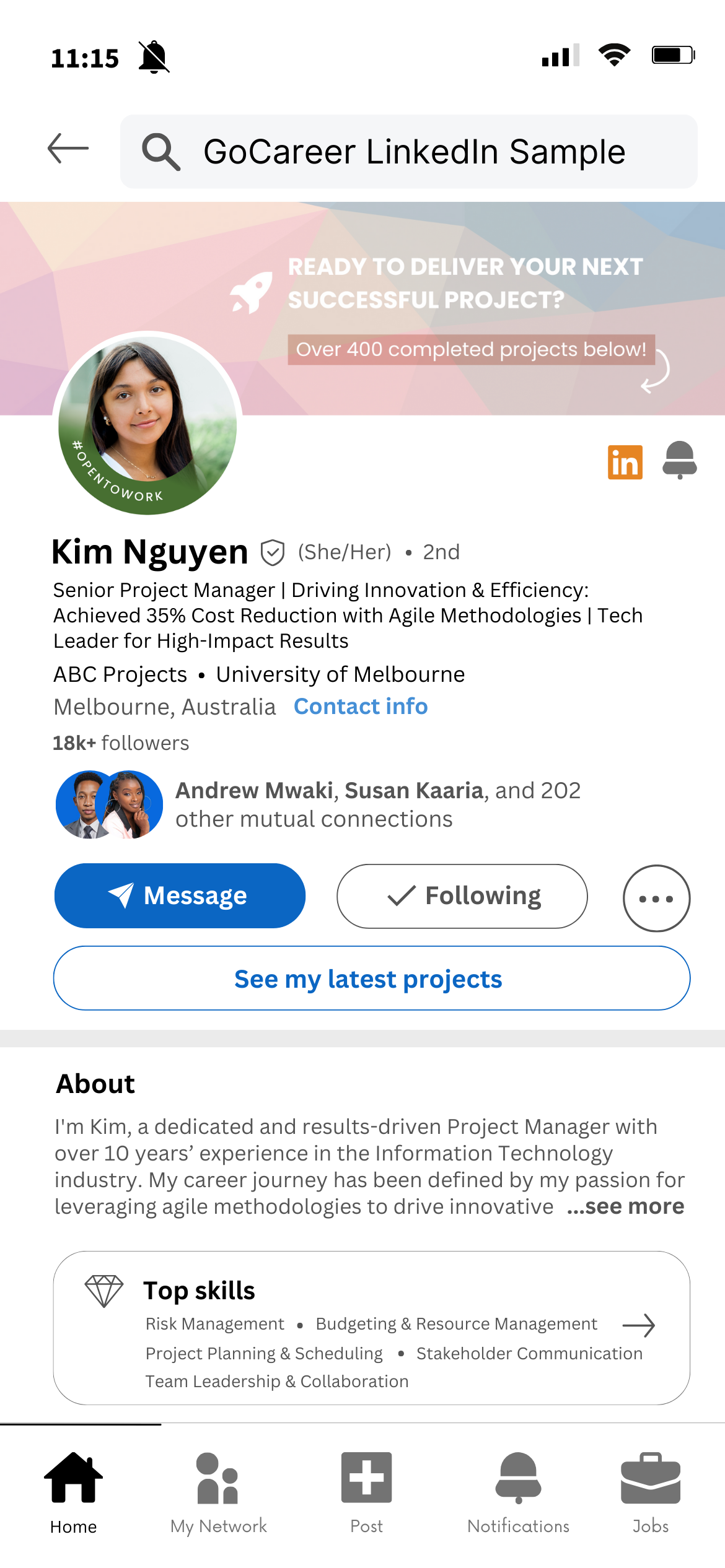 Learn MoreWe’ve turned ordinary LinkedIn profiles into powerful recruiter magnets, highlighting professional value, unique strengths, and standout qualities. Explore these optimized samples to see how we can help you rise above the competition and get noticed by recruiters and hiring managers.